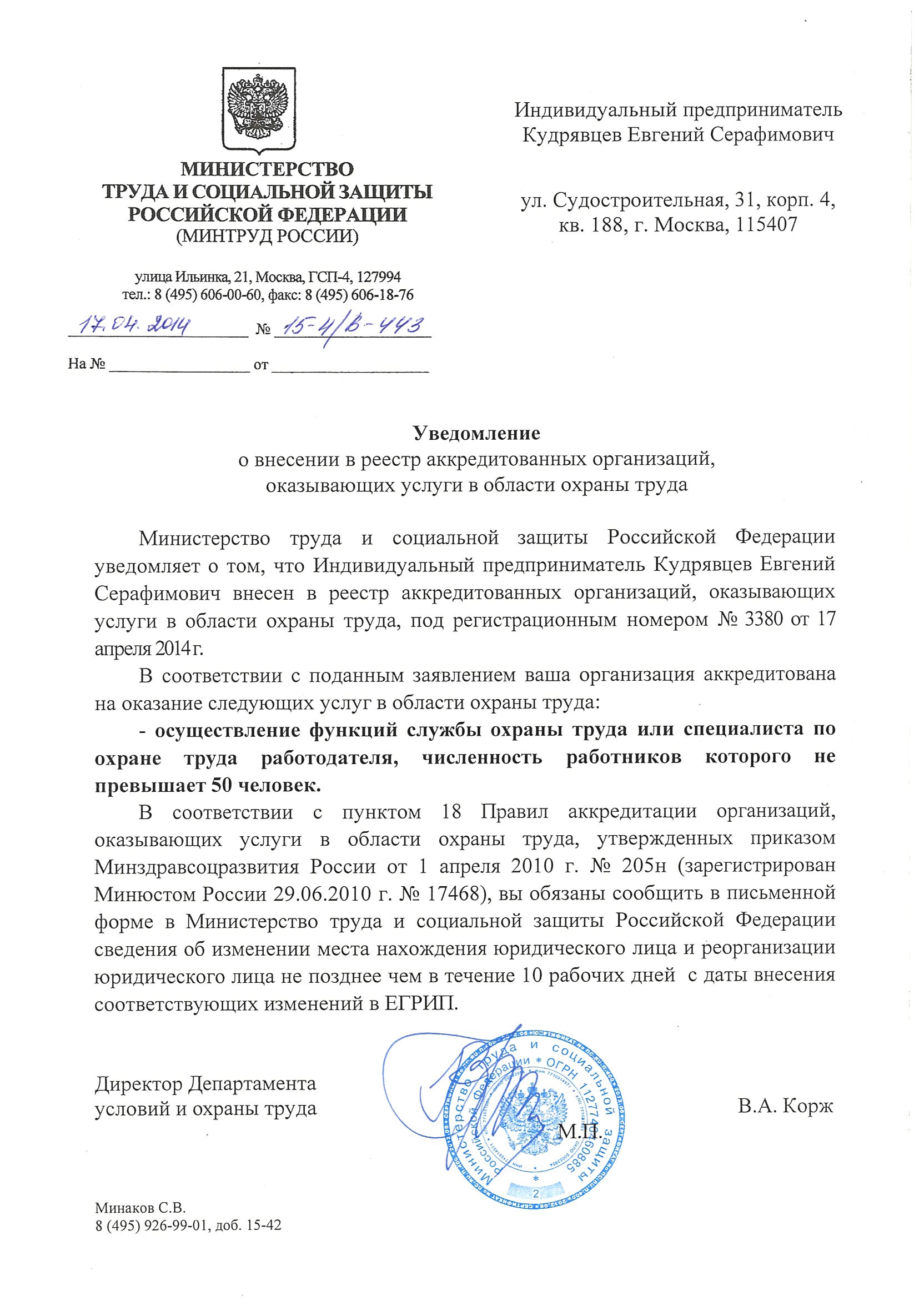 Аккредитация в министерстве труда и социальной защиты Российской федерации в области услуг "Охрана труда"